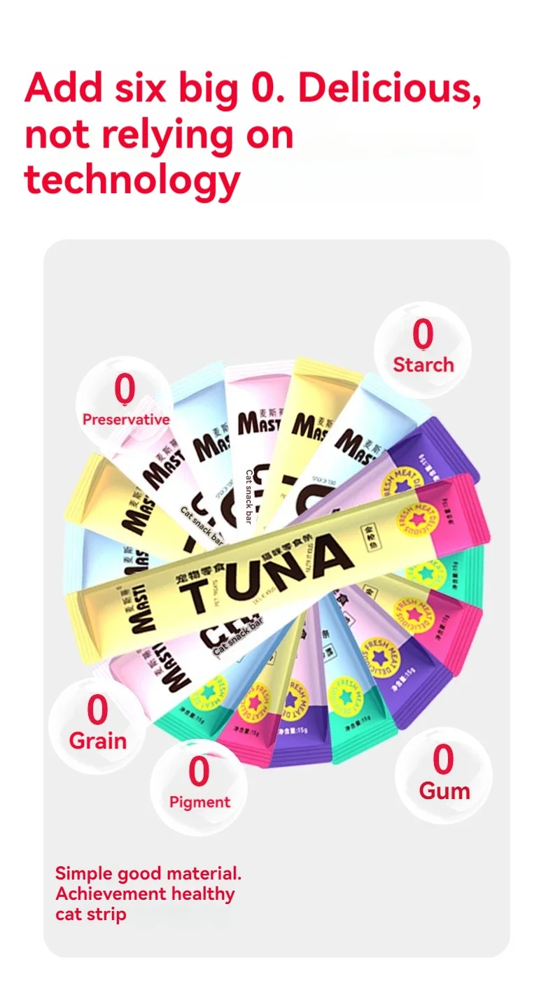 Cat snacks cat strips 15g/piece fresh tender chicken tuna cod wet food nutrition replenishment fattening cat snacks